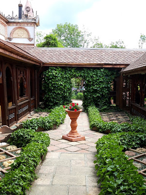 On ne sait pas où poser ses yeux en premier dans ces univers qui semblent diamétralement éloignés mais qui s’harmonisent de manière presque magique. Un riad marocain, une boqueria espagnole, une chambre autrichienne, un jardin qui reprend les codes des cloîtres, un salon réservé aux anges, un jardin d’apothicaire avec des plantes médicinales. Tout a été choisi avec soin pour faire de ces 7000 m2, un lieu à part, un lieu à soi. Au milieu des plantes, des glycines, des renoncules et des myosotis, un marronnier centenaire. De l’eau, que l’on entend telle une musique, entre deux chants d’oiseaux qui se répondent, veillant sur les lézards, les papillons et les insectes.